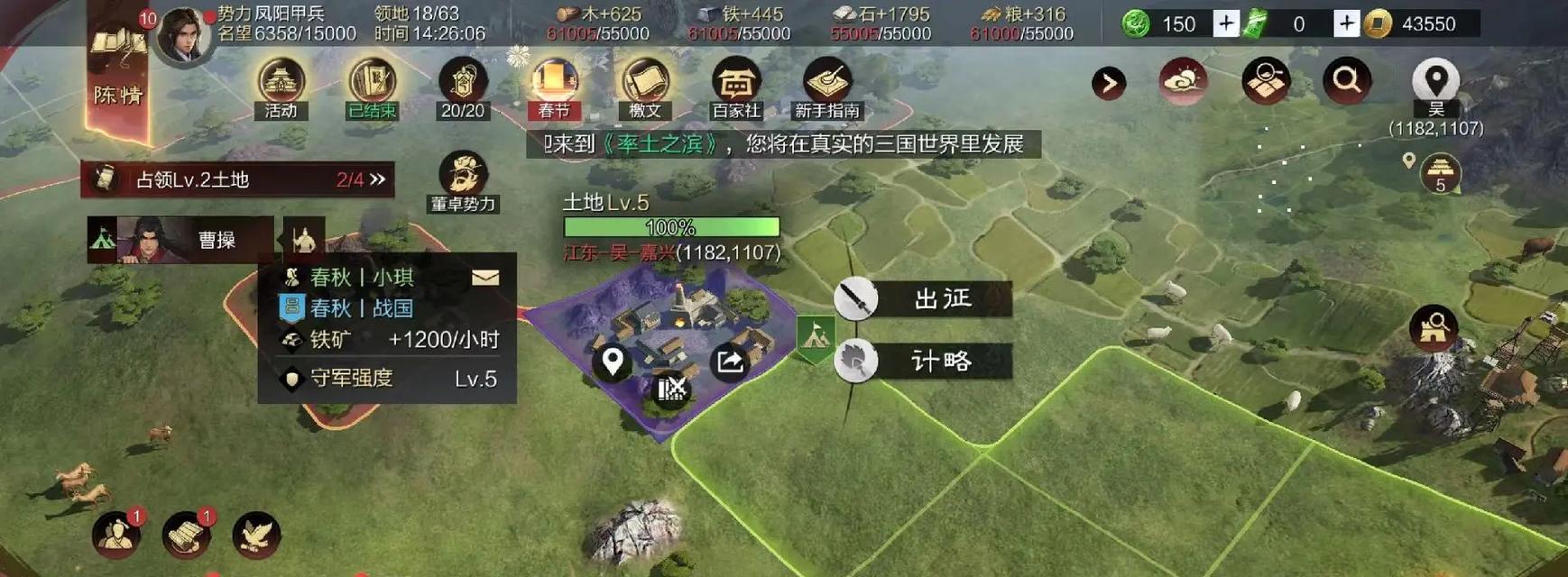 率土之滨中有各种领地资源可以占领,包括农田、银矿等。玩家可以派遣队伍攻打其他玩家的领地,夺取资源增加自己的实力。在攻城略地中,需要合理调度兵种和运用指挥技能,以取得最终的胜利。